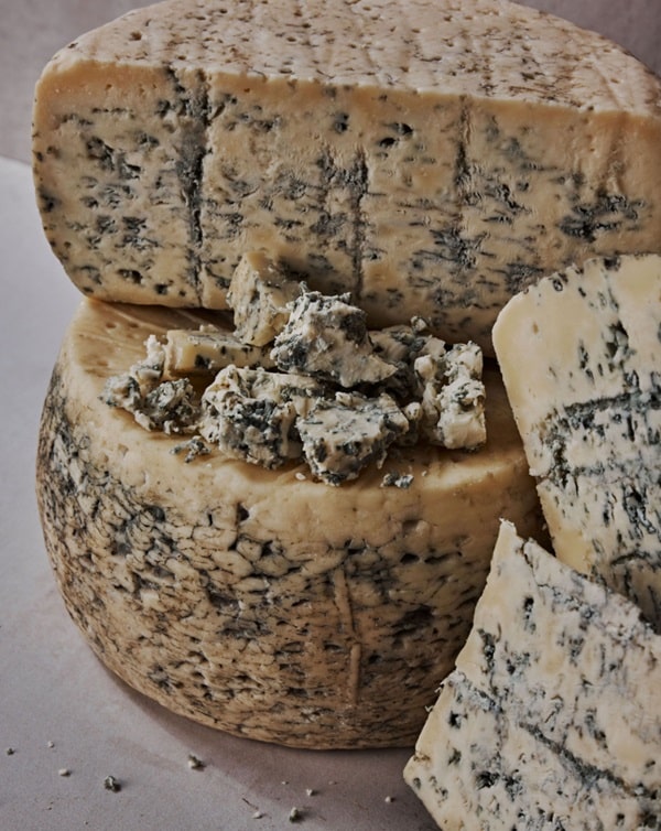 Sweet Grass Dairy’s raw cow’s milk Asher Blue cheese has been recognized domestically and internationally with multiple awards. Like all blue cheeses, it is inoculated with the mold and then pierced fifty times on each side in order to get oxygen inside the cheese to let the mold grow during the aging process. The Asher Blue has a mushroomy, earthly, and slightly pungent flavor with an unexpectedly mild, salty finish, with a creamy-crumbly texture with a natural rind. Our Blue Cheese is classified in the Creamy-Crumbly texture category and has a milder and more approachable flavor than that of stronger blues. Blue cheese is one of the hardest cheeses to make and that is just the kind of challenge Jeremy needed to start making it.