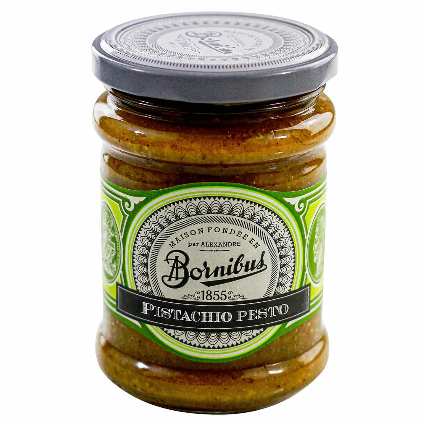 Bornibus’ pistachio pesto is made from crushed Sicilian pistachios and prepared utilizing old world traditional Italian techniques. This tasty pistachio pesto is a wonderful variation on traditional Italian basil pesto. The pistachios add a unique flavor and texture to the pesto, making it a delicious and versatile sauce that can be used in many different dishes.