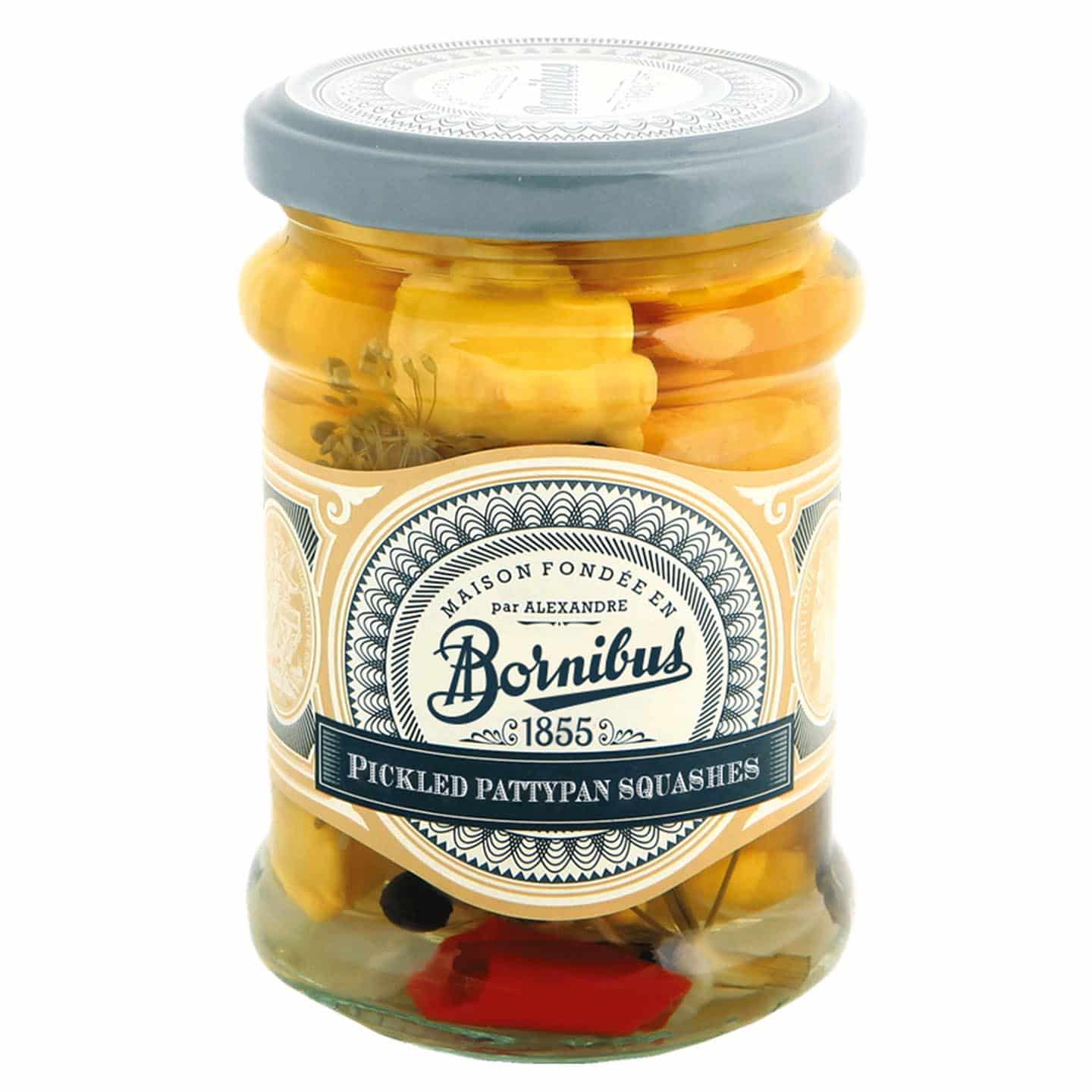 Bornibus Pickled Pattypan Squashes (Petits Pâtissons), whole, 8.6oz (245g)