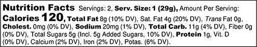 Cashew, Organic White Wheat Flour, Water, Tapioca Starch, Organic Extra Virgin Olive Oil and/or Organic High Oleic Sunflower Oil and/or Organic Canola Oil, Organic Malt Extract, Salt, Organic Sunflower Lecithin, Tricalcium Phosphate, Clarified Butterfat, Sugar, Orange Blossom Water, Rose Water, Lemon Juice, Fenugreek Seeds.