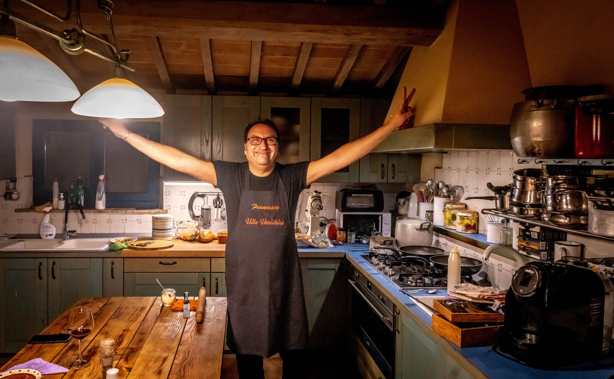 Spend an afternoon in our cooking school in the heart of Tuscany, we will prepare homemade pasta together (such as fantastic ravioli with seasonal fillings, colorful tagliatelle, gnocchi) with fresh products purchased that the morning at the local markets. We will use genuine raw materials, pecorino, ricotta, the Cinta Senese, and Chianina. We will cheer during and after the class with a lovely local red wine. After the cooking class we will have dinner together with prepared food. Wine will accompany you throughout the evening until dessert in front of the fireplace. You will spend a relaxing night immersed in the natural peace of our villa. Upon awakening our breakfast will be served.