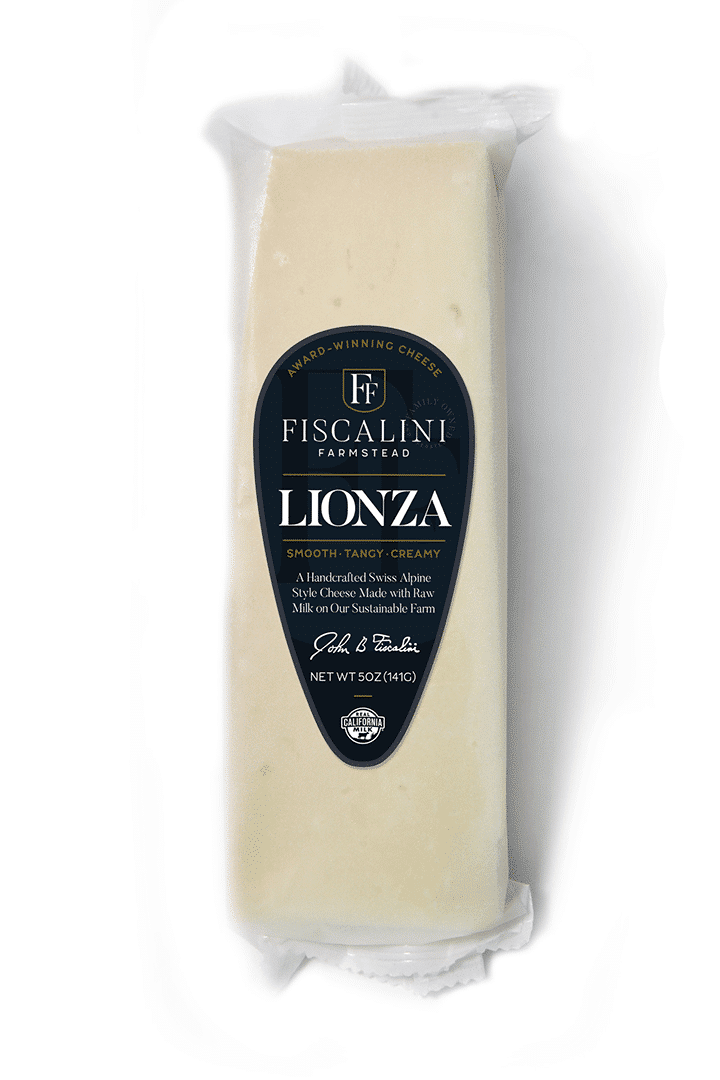 Our Lionza is a Swiss Alpine style cheese, named after the tiny village in the Swiss Alps that the Fiscalini Family called home for more than 300 years. We follow the same traditional methods today that were developed generations ago to create this one of a kind cheese. The complex flavors and aromas range from nutty and fruity to tangy and herbal. With a natural outer rind, this cheese also has the occasional irregular eye common to Swiss Cheese and a semi-soft springy texture. Lionza is made from raw cow’s milk, handcrafted into 28-pound wheels and aged for a minimum of 6 months.